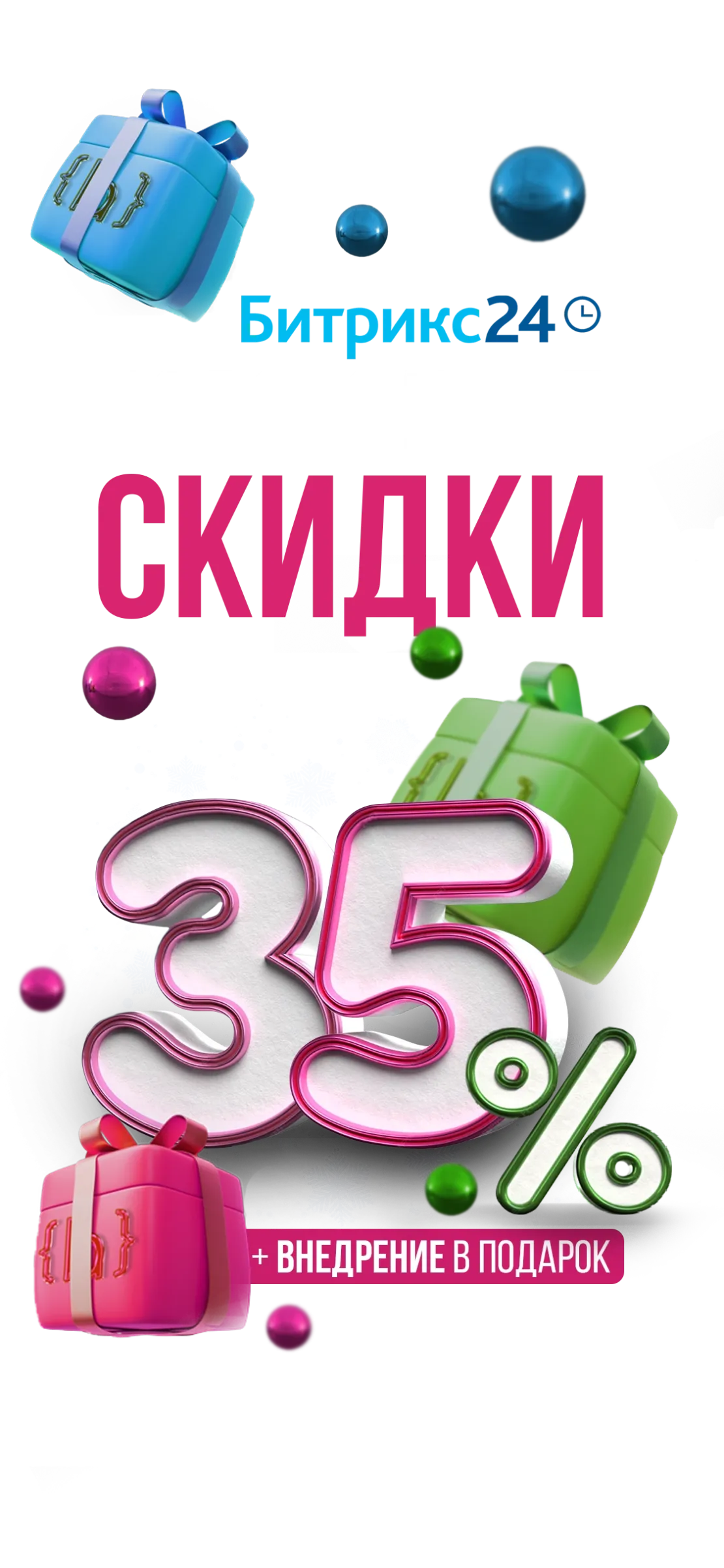 Весь ДЕКАБРЬ – сделайте лучшее вложение в развитие компании с максимальной выгодой. Приобретайте любой тариф Битрикс24 со скидками до 35% и получите внедрение CRM в ПОДАРОК.